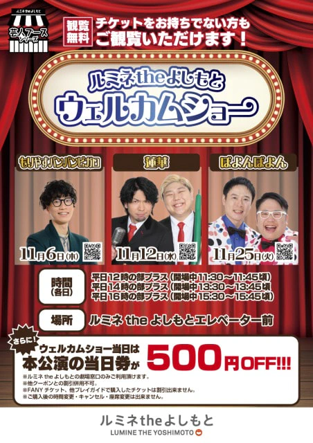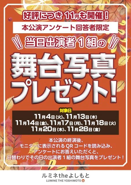 ルミネtheよしもと11月キャンペーンのお知らせです。