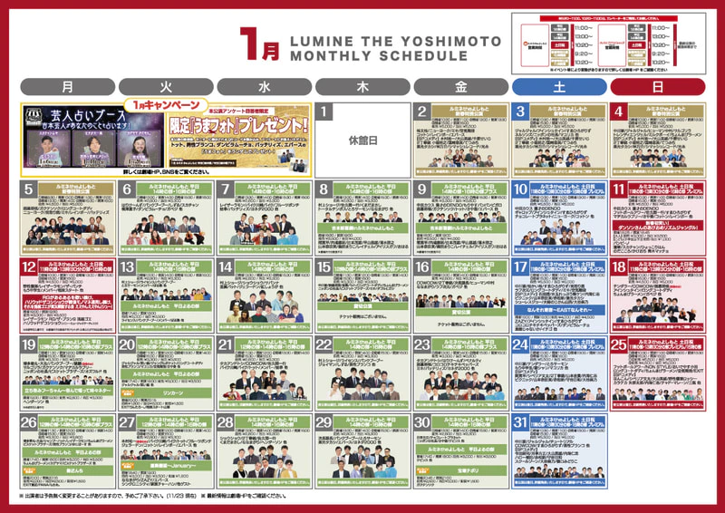 ルミネtheよしもと 1月月間スケジュール